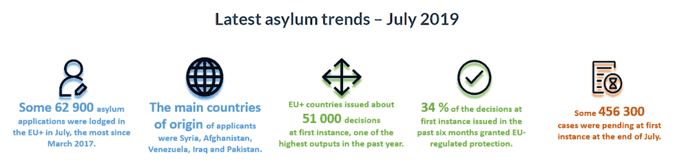 Dall'inizio dell'anno, sono state presentate 400.500 domande di protezione internazionale nell'Ue (più Norvegia e Svizzera) con un aumento del 11% rispetto allo stesso periodo del 2018.